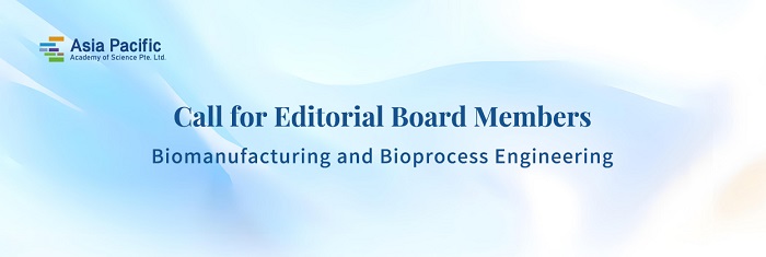 Our new journal, Biomanufacturing and Bioprocess Engineering (BBE) is seeking active researchers and scholars to join its Editorial Board. The journal publishes high-quality research and reviews at the intersection of bioprocess development, scale-up, downstream processing, synthetic biology, and sustainable biomanufacturing.
